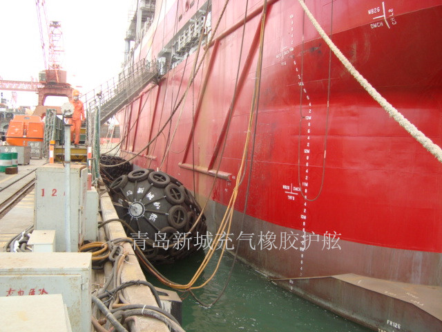 船舶靠球是一種海洋防碰撞裝置.它由合成線繩增強(qiáng)橡膠板制成,內(nèi)有壓縮空氣可漂浮在水面上作為保護(hù)性介質(zhì)使用.因此,當(dāng)過駁作業(yè)和靠系泊作業(yè)時(shí),船用橡膠護(hù)舷就作為一個(gè)重要的保護(hù)介質(zhì)用來防止發(fā)生碰撞.
